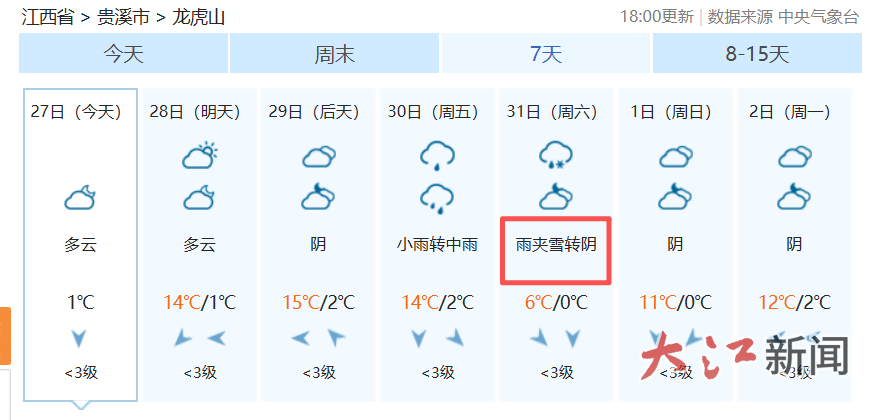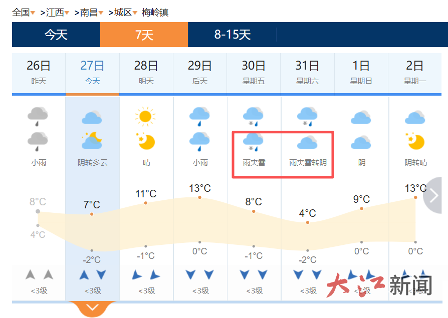 -4℃!雨夹雪!江西下雪时间表来了