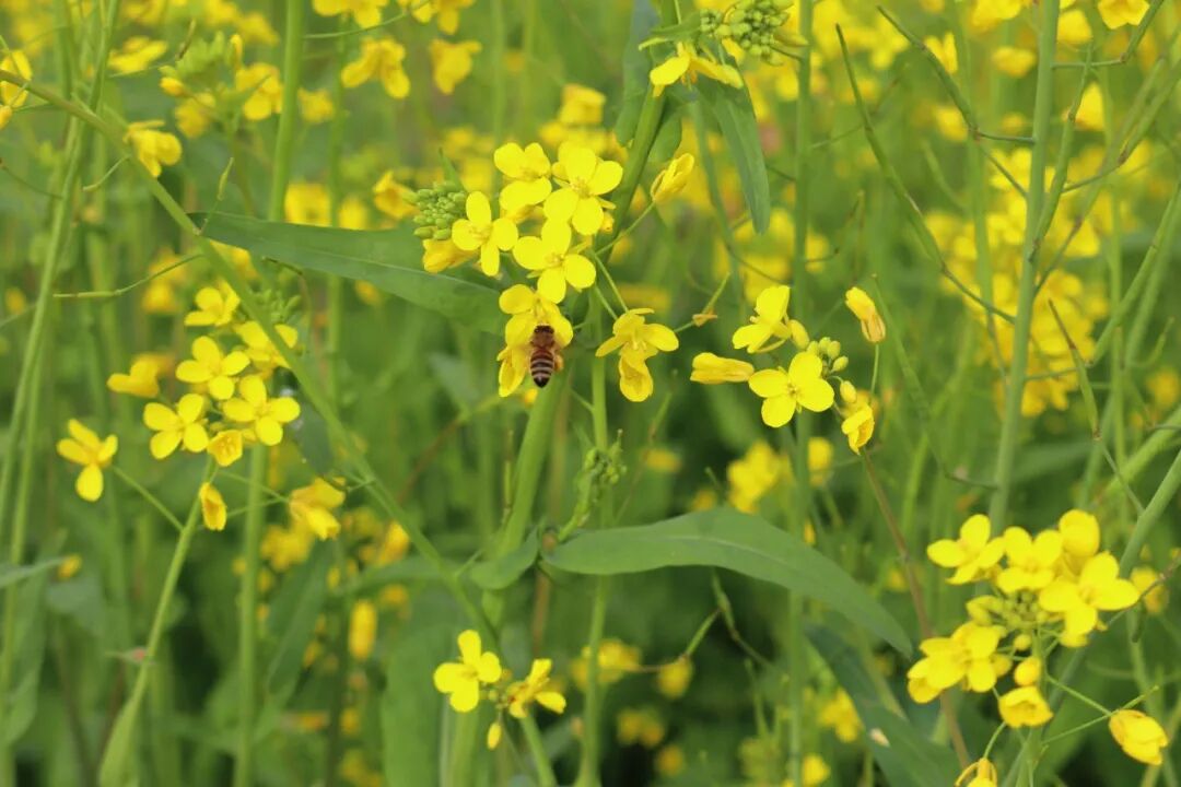 位于钤阳办事处白田村的油菜花田内,300多亩油菜花竞相开放,嫩黄的花穗缀满枝头,在暖阳下铺展成一片灵动的金色。